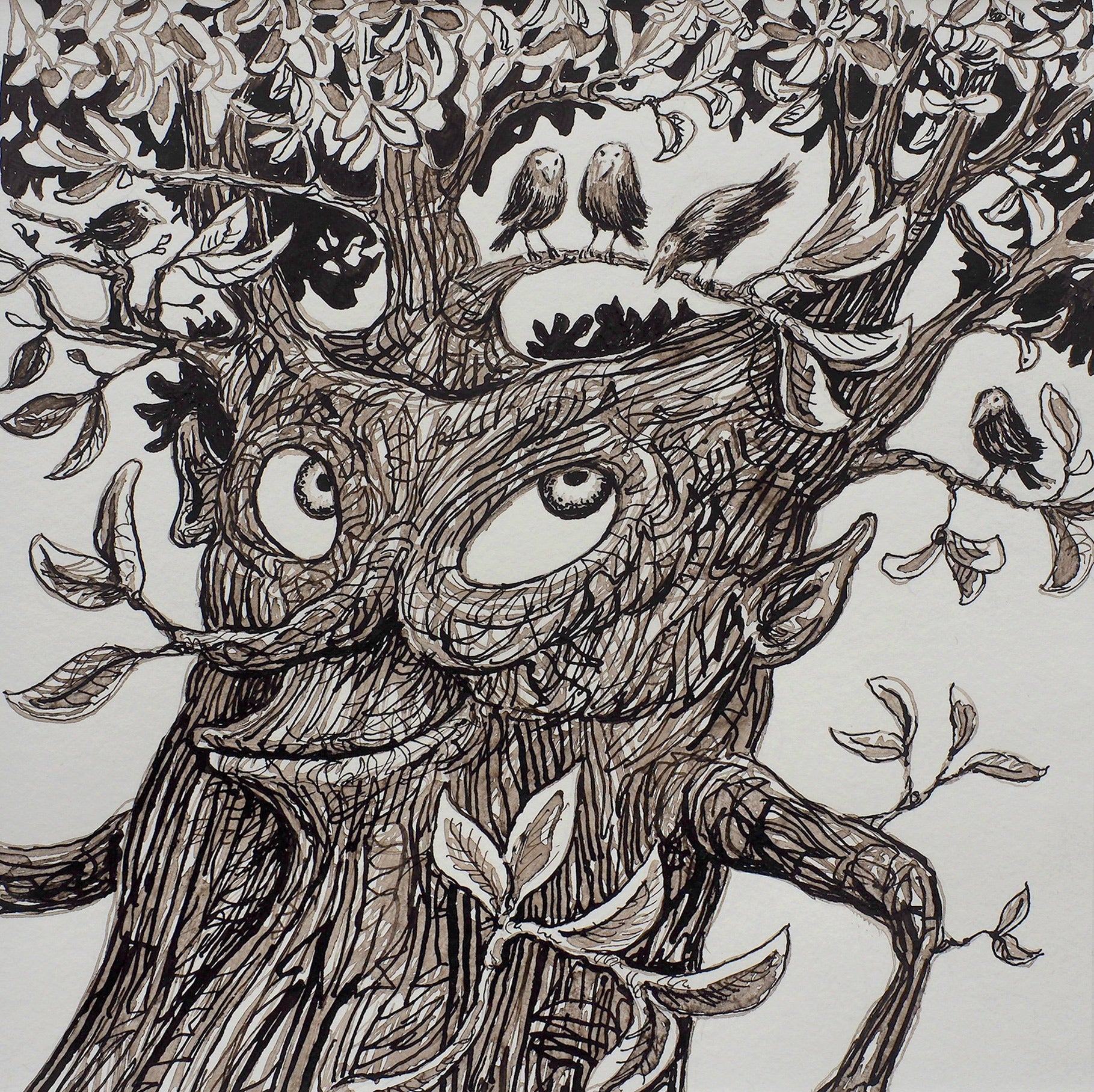 Tuschezeichnung auf Aquarellpapier.