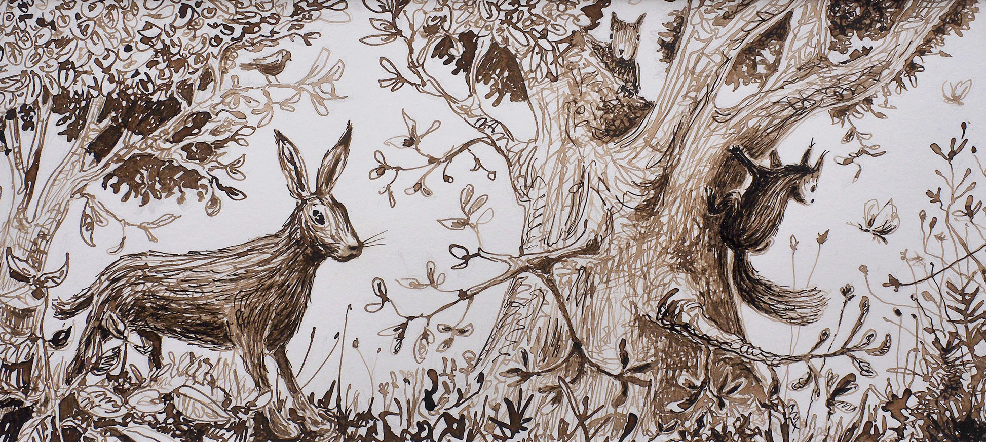 Tuschezeichnung auf Aquarellpapier.
