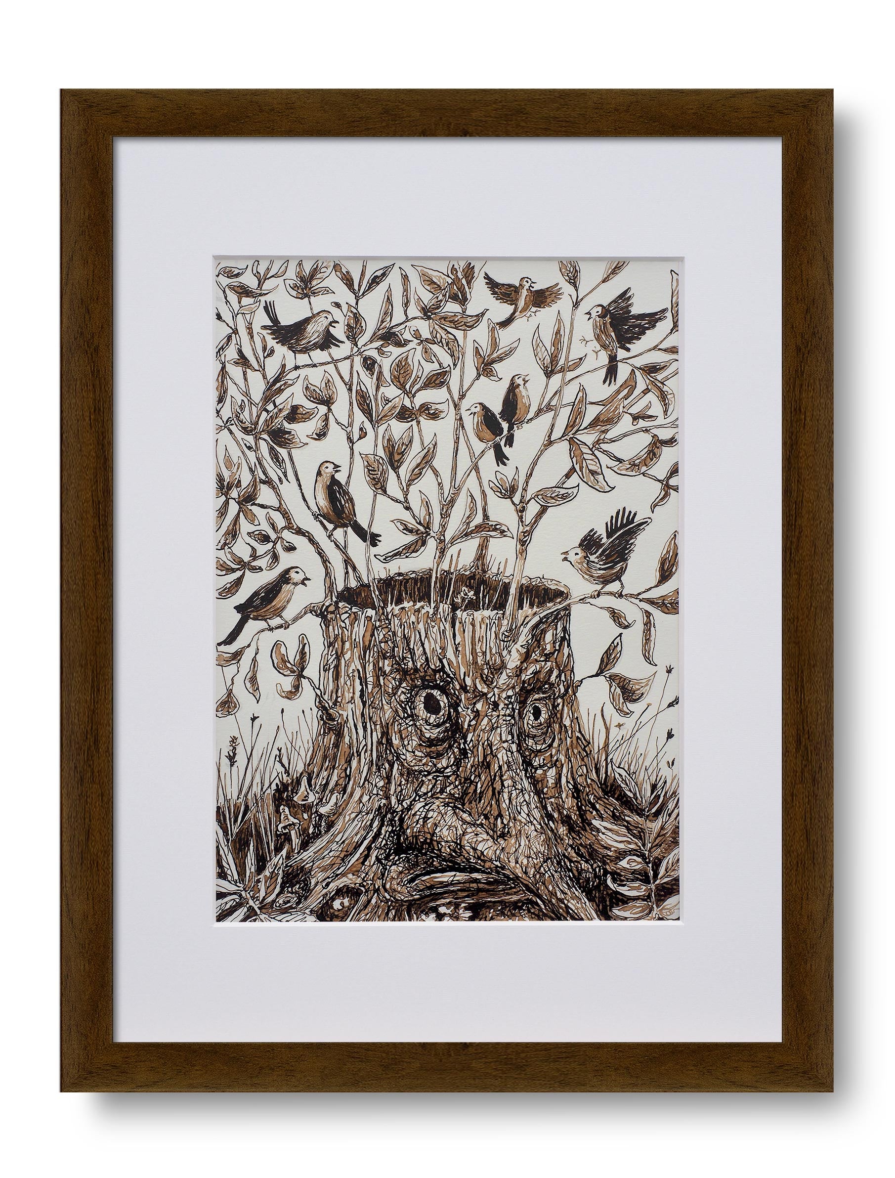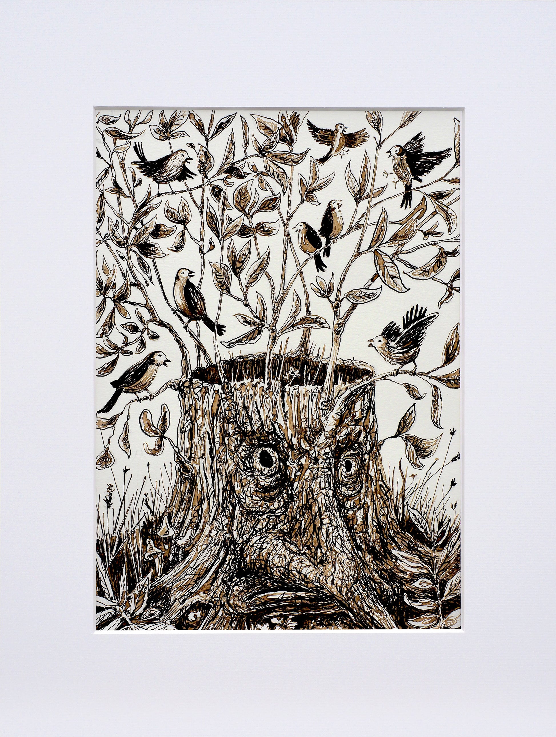 Tuschezeichnung auf Aquarellpapier.